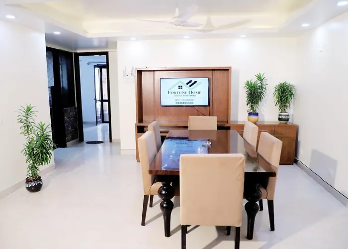 Consisting of a balcony and a seating area, Fortune Home Service Apartment 3Bhk,J-171 Saket is fitted with a sofa set and a writing desk, as well as modern amenities like a flat-screen TV with satellite channels. Beds fitted with down-feather pillows are at guests' disposal. A bathroom features a bidet, a separate toilet, and a shower, while a shower cap and bath sheets are also provided.